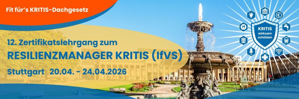 Cyberattacken, der Klimawandel und geopolitische Umbrüche führen zu tiefgreifenden Veränderungen, die Unternehmen und Behörden dazu zwingen, sich für neue Herausforderungen zu wappnen. Angesichts dessen ist eine Stärkung der Resilienz keine Belastung, sondern ein Wettbewerbsvorteil. Wir bieten mit dem Resilienzmanager KRITIS (IfVS) für Behörden und Unternehmen eine durch die IHK Akademie München und Oberbayern zertifizierte Ausbildung, die höchsten Qualitätsansprüchen genügt. Dieser Zertifikatslehrgang ermöglicht die Qualifikation von Fachpersonal in den Spezialgebieten Schutz Kritischer Infrastrukturen (KRITIS), Stärkung der Resilienz, Wirtschaftsschutz bzw. Behördenselbstschutz und vermittelt damit zeitgleich die Fähigkeit zum Aufbau schlagkräftiger Strukturen für den Selbstschutz im Rahmen der Zivilen Verteidigung. Die Umsetzung der CER-Richtlinie in nationales Recht, das sogenannte KRITIS-Dachgesetz, nimmt Unternehmen und Betriebe ebenso in die Pflicht, wie das ZSKG (Zivilschutz- und Katastrophenhilfegesetz). Für die Katastrophenschutz- und Sicherheitsbehörden ergeben sich aus den genannten Rechtsnormen sowohl Kontroll- als auch Kooperations- und Unterstützungspflichten.